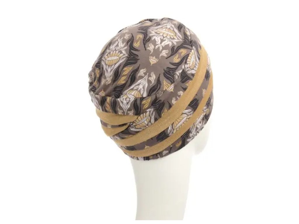 Turban je prodyšný a se svou termoregulační vlastností v teple ochlazuje a v chladném počasí ohřívá.