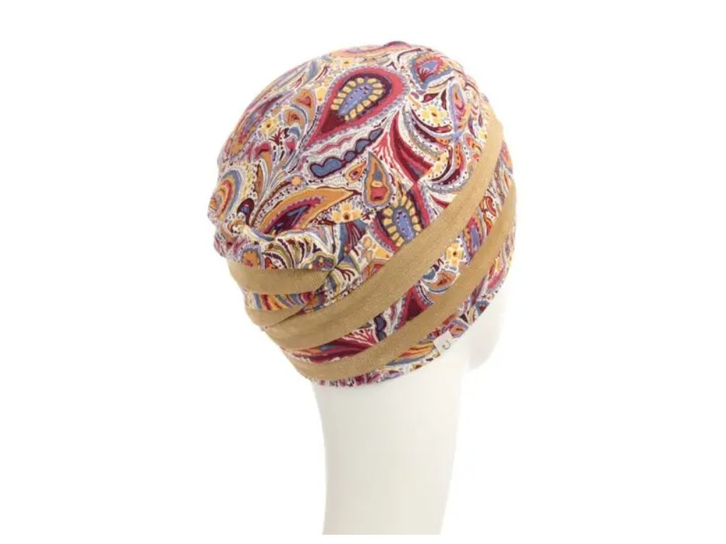 Turban je prodyšný a se svou termoregulační vlastností v teple ochlazuje a v chladném počasí ohřívá.